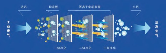 2、“低温等离子体有机废气净化设备”利用低温等离子体产生的具有高氧化性的臭氧,在催化剂的作用下,使有机废气在较低的温度完全转化。该设备可应用于溶剂厂、印染厂、油漆厂等有机废气排放源。