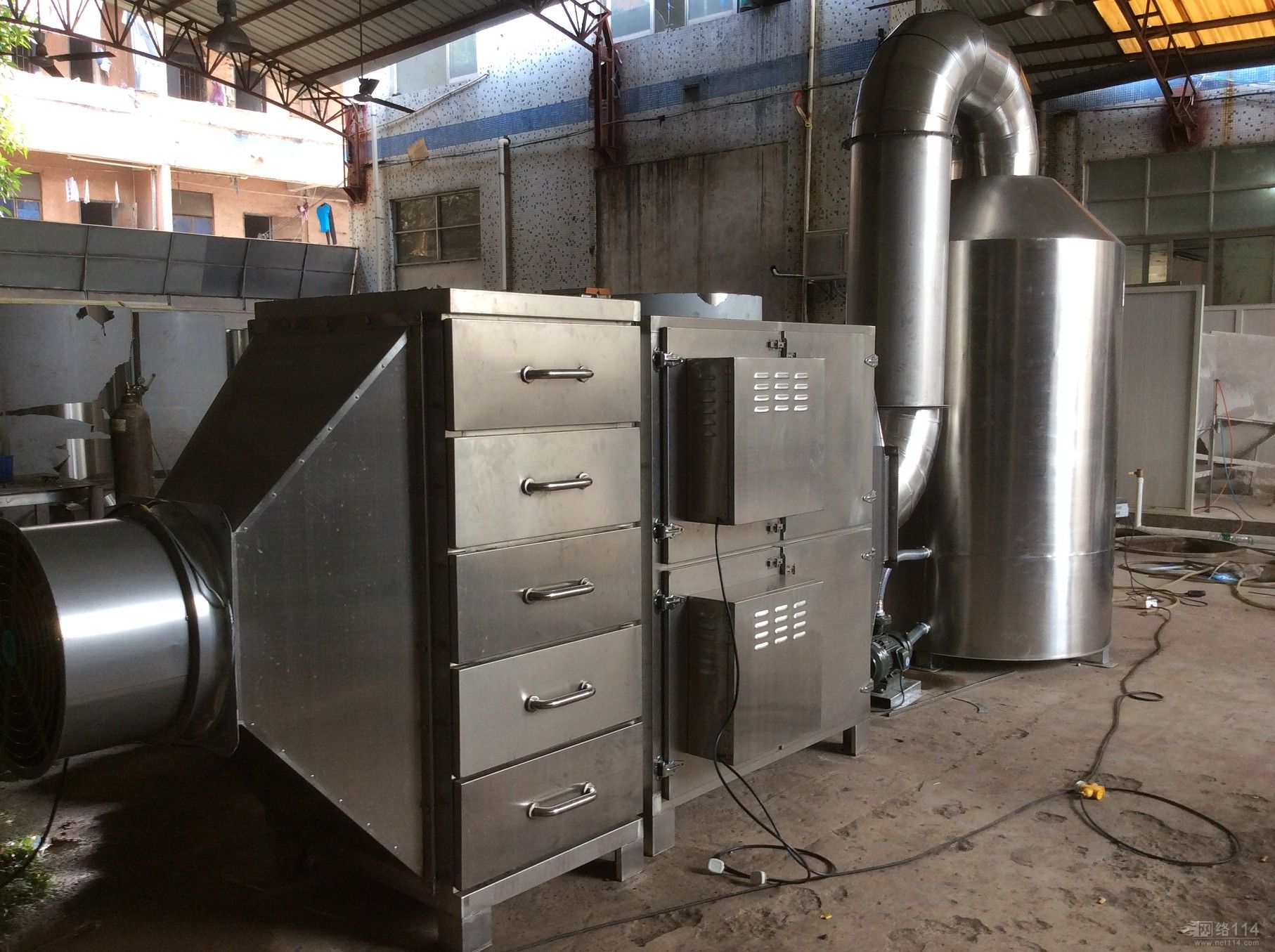 光离复合催化处理技术是一种专门去除有毒有害气体及恶臭气体的一种装置。是等离子分解废气净化器+UV光解除臭废气净化器两种设备的完美结合,综合采用了等离子废气净化器和紫外光触媒除臭废气净化器两种设备的优点组合而成,利用等离子分解技术和UV紫外光解技术相结合,对废气和臭气进行高效协同净化处理!它具有高效率、运行成本低、设备占地面积小,自重轻、无任何机械动作,无噪音等特点,等离子光解一体机净化设备净化效率在95%以上。是目前市场上更佳的废气净化设备。下面图片就是我们光离复合废气处理设备