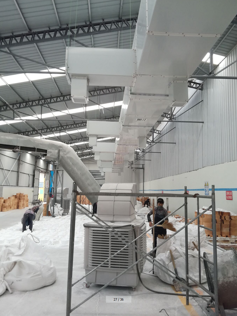 系统整体运行后降温效果明显,车间空气明显改善,温度也降至30摄氏度以下。机组为正压送风,车间门窗敞开内部异味闷热空气排出室外,车间内部空气形成了良性循环,空气清新凉爽。工人在车间内不发闷,有效提高员工的工作效率,受到了客户的一致好评!